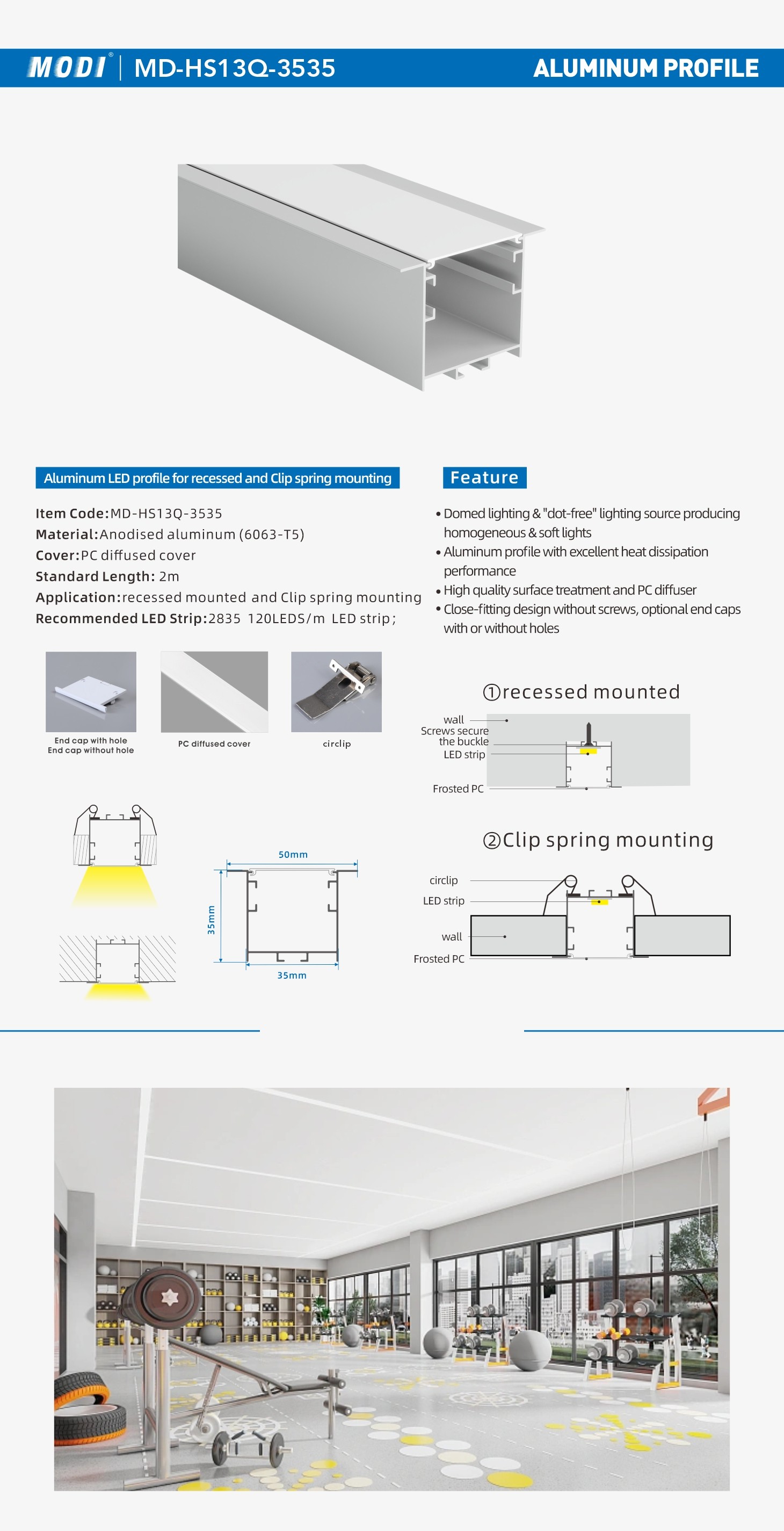 Application:recessed mounted and Clip spring mounting