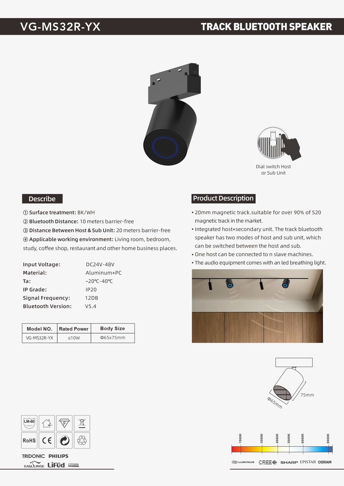 Bluetooth Distance: 10 meters barrier-free