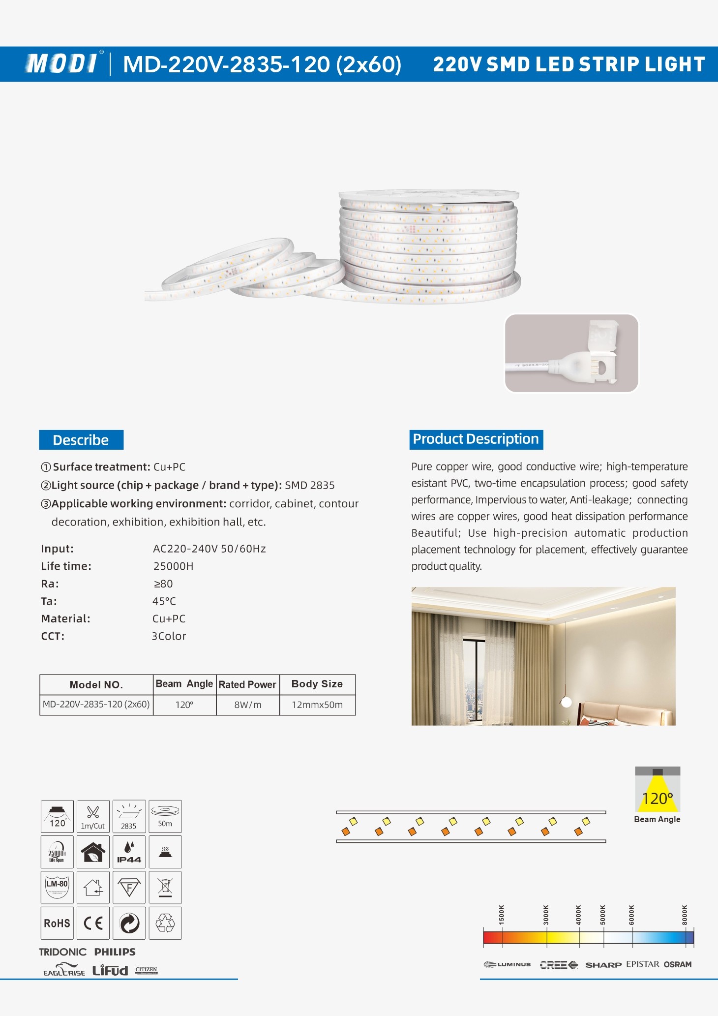 Model NO.: MD-220V-2835-120 (2x60)